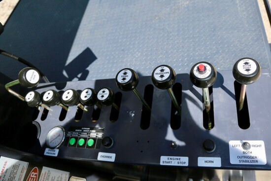 Dual operator platforms are equipped with four single-lever crane controls arranged to ANSI B30.5 standards. Fully proportional control valves and system pressure gauge. Each station also includes outrigger and stabilizer controls, engine start/stop, foot throttle, signal horn, boom-angle indicator, bubble levels, beverage container, load chart and range diagram.