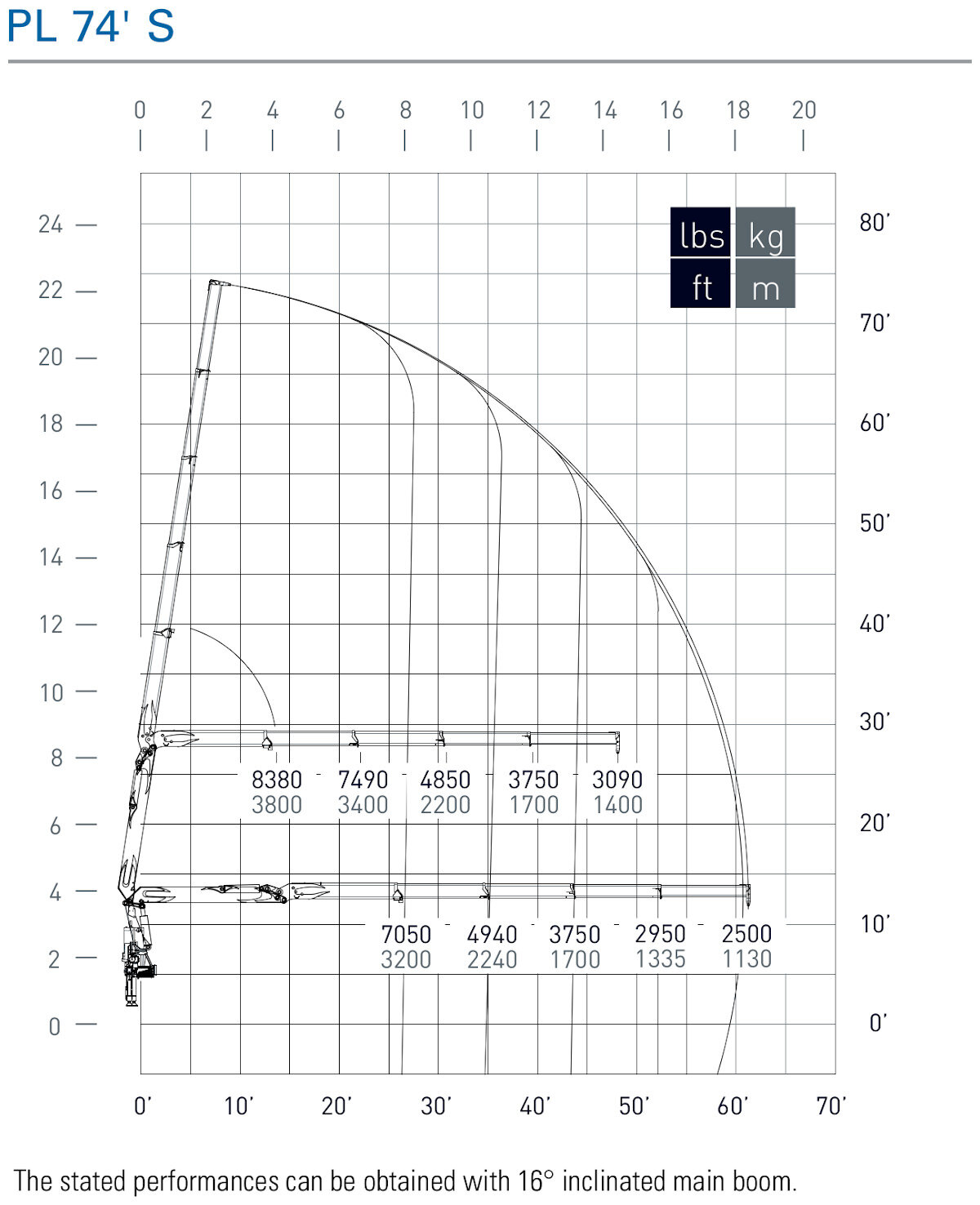 Manitex PM Powerlift wallboard machines are the ideal solution for the delivery of plasterboard panels. Designed for the American market and to work in the toughest conditions, the PL 74 S features an outreach of 74'. Thanks to its advanced electronic "Power Tronic" system the crane always operates safely with the highest performance. In combination with its proportional load sensing control valve bank, the crane is smoother and faster. This is technology at work! The PM Power Tronic system is the electronic management system developed by MAC that allows the operator to: - Constantly monitor the crane status and possible movements that can be performed even when it’s blocked due to an excessive load - Thanks to the CANBUS system, you can check all the information provided by the central control unit reducing cable connections and increasing the speed of data transmission - Maximize safety thanks to the new generation radio remote controls, allowing the full control of crane movements - Easily read the information appearing on the display thanks to simple graphic interface symbols - Prevent possible damage deriving from hydraulic oil overheating thanks to the automatic temperature interval check - Avoid wasting time for troubleshooting; the Power Tronic system is also a chart recorder which makes maintenance easier Specs - Maximum lifting moment: 187,480 ft lbs - Maximum hydraulic reach - Horizontal: 61’2” - Vertical: 73’8” - Hydraulic system - Recommended oil flow: 16+ 16 gals/min - Rated pressure: 4420 PSI - Tank capacity: 53 gals - Slewing system - Slewing angle: 41º - Slewing moment: 32,450 ft-lbs - Max. working heel: 8.7% (5º) - Standard crane weight: 9,240 lbs - Max. power absorbed by hydraulic pump: 45